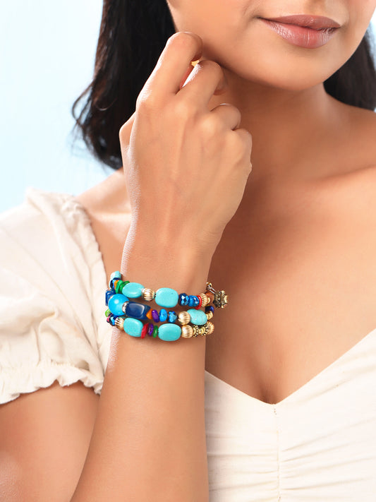 Bracelet for Women and Girls Fashion Blue Beads Bracelets for Women | Stackable Bead Bracelet Stretch Beaded Layered Bracelet | Birthday Gift For girls and Women