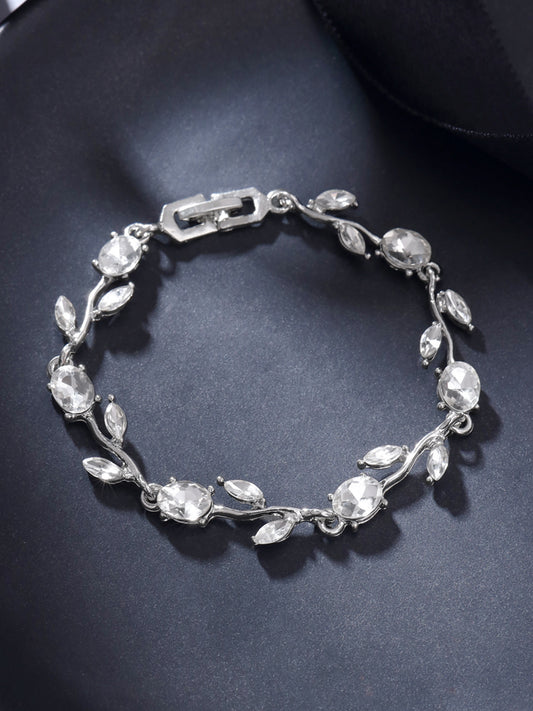 Women Crystal Bracelets | Rose Leaf Shaped Silver Toned Bracelets For Women | White CZ Crystals Bracelet For Woman | Birthday Gift for Girls & Women Anniversary Gift for Wife