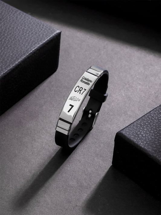 Bracelets for Men & Boys Stainless Steel Silicone Wristbands Inspirational Engraved Signature Bracelets Birthday Gift for Men & Boys (CR7 CRISTIANO RONALDO)