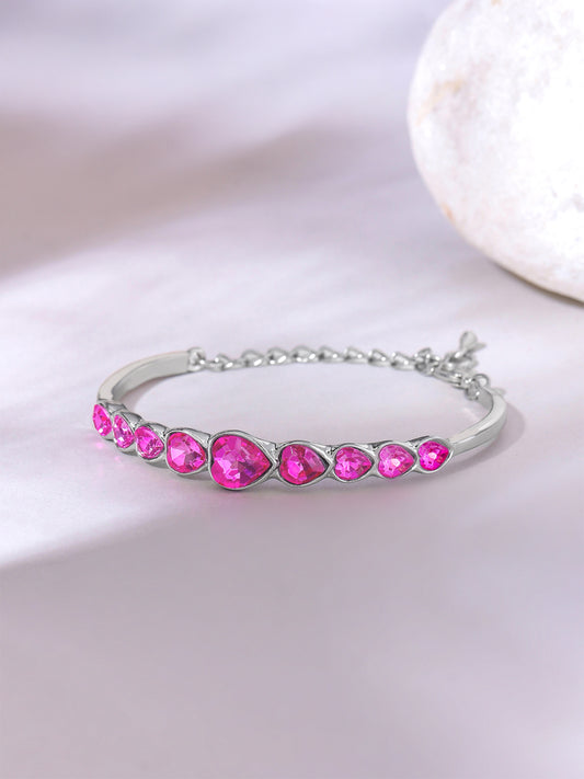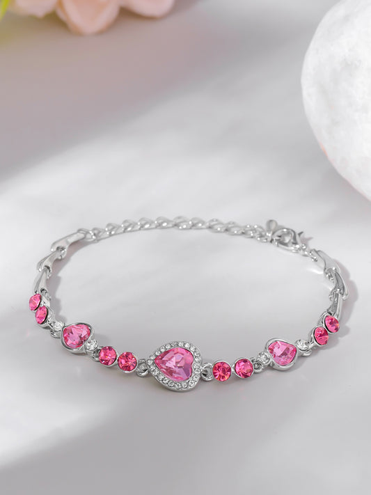 Women Crystal Bracelets | Heart Shaped Silver toned Bracelets | Pink CZ Crystals Bracelet For Woman | Birthday Gift for Girls & Women Anniversary Gift for Wife