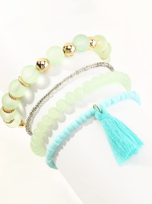 Bracelet for Women and Girls Fashion Blue Beads Bracelets for Women | 4 Pcs Stackable Bead Bracelet | Stretch Beaded Layered Bracelet | Birthday Gift For girls and Women
