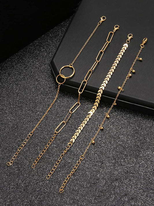 Combo Bracelets for Women Gold Plated 4 Pcs Chain Bracelet Set For Women and Girls