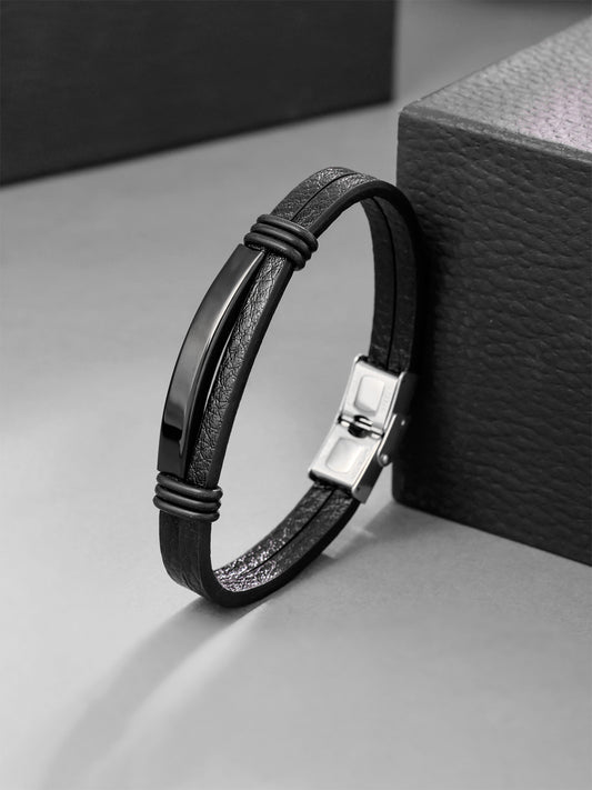 Bracelets for Men and Boys | Black Leather Bracelet for Men | Stainless Steel Type Leather Bracelets for Men | Accessories Jewellery for Men | Birthday Gift for Men and Boys Anniversary Gift for Husband
