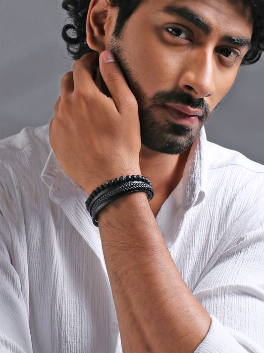 Combo: Fashion Black & Silver Bracelets for Men | 1 Size | Hand Accessories