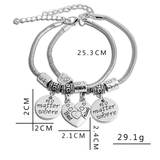 Bracelet for Women Engraved Friend Love Steel Charm Silver Bracelet for Girls and Women