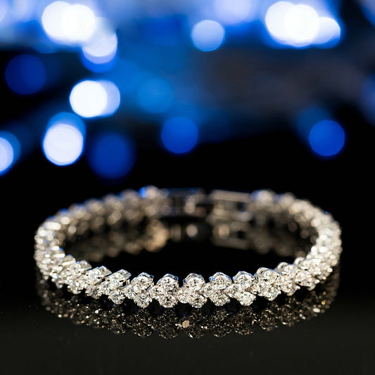 Valentine Gift for Girls Bracelet for Women and Girls | White Crystal Bracelets for Women Silver Toned Cubic Zircon Bracelet | Birthday Gift for Girls & Women Anniversary Gift for Wife
