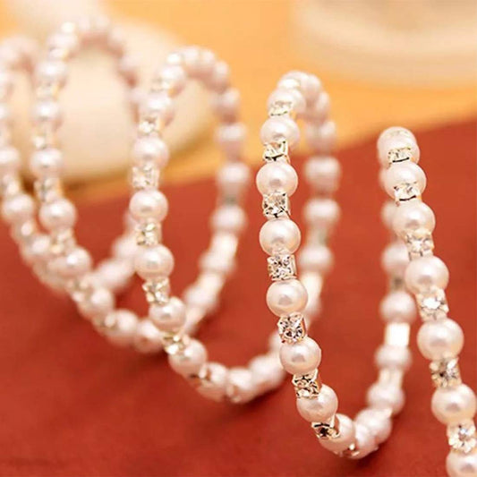 Pearl Bracelet for Women Pearl Crystal Multi-Layer Charming Simulated Stretchable Pearl Bracelets for Women and Girls