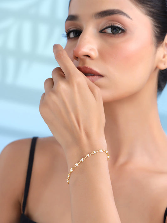 Gold Plated Adjustable Bracelet for Women | Fashion White Stone Charm | Gift for Her