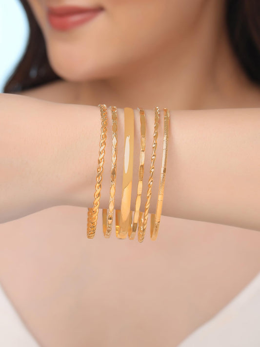 Golden Bangle Bracelets Set - Fashion Accessories for Women | Pack of 6 | Size: 2.6 cm | Gold