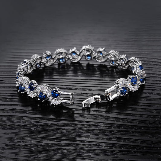 Bracelet for Women and Girls Crystal Bracelets for Women Silver Tone Blue Crystal Studded Bracelet Birthday Gift For girls and women Anniversary Gift for Wife