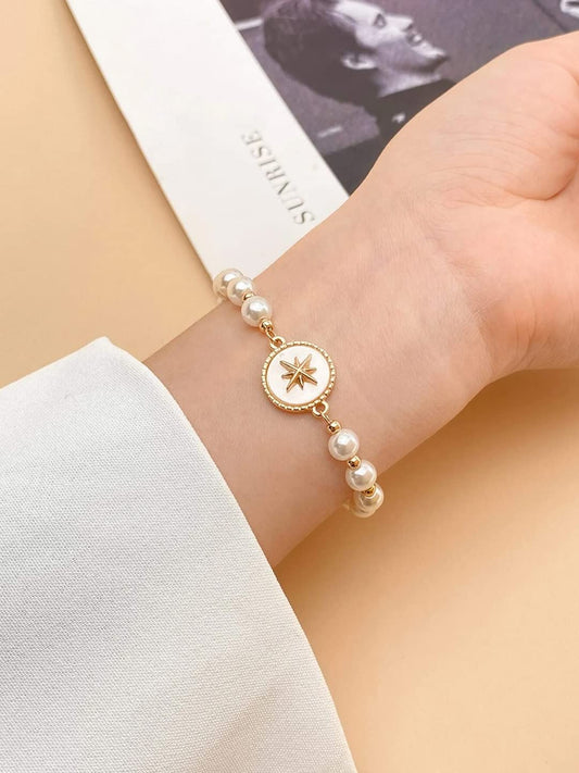 Bracelet For Women Gold Tone Pearl Beaded Adjustable With Centre Charm Bracelet For Women and Girls