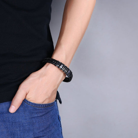 Black Leather Bracelet for Men | Stylish Hand Accessory | One Size | Gift for Him
