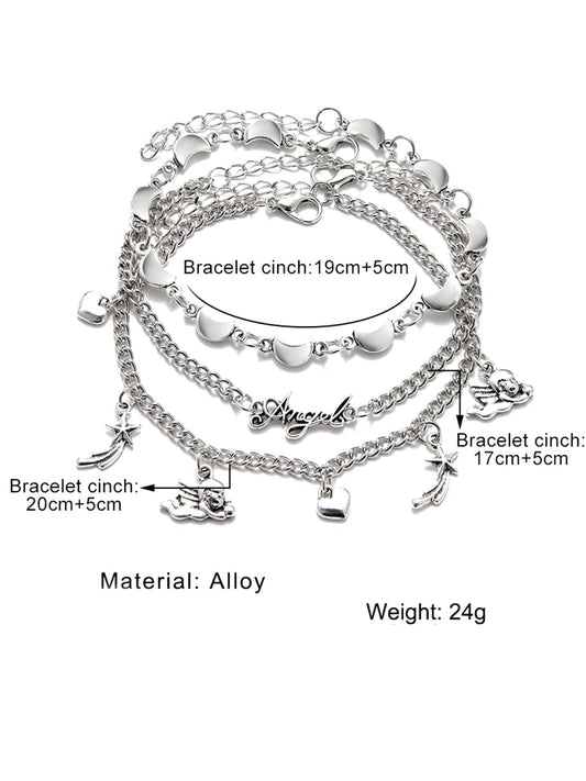 Combo Bracelets for Women 3 Pcs MultiLayer Silver Plated Stack Bracelet Set For Women and Girls