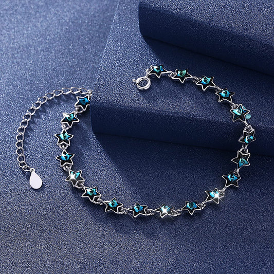 Women Crystal Bracelets | Star Shaped Silver Toned Bracelets For Women | Blue CZ Crystals Bracelet For Woman | Birthday Gift for Girls & Women Anniversary Gift for Wife