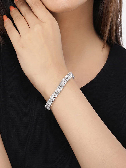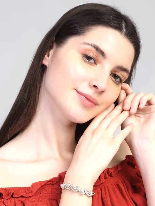 AD Bracelet for Women Rhodium-Plated White American Diamond AD Triangular Chain Bracelet For Women and Girls