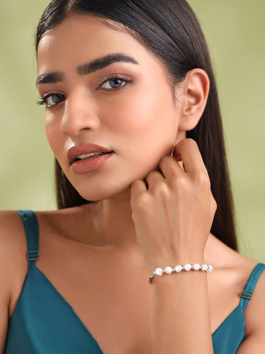 Silver Plated Women’s Bracelet: Adjustable White Pearls Fashion | One Size | Elegant Gift Box