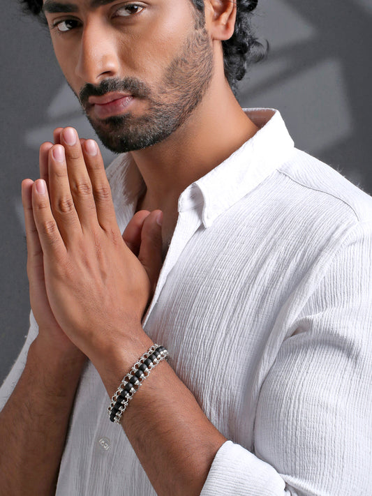One Size Traditional Silver Kada - Stylish Bracelet for Men | Black Stone | Hand Accessories