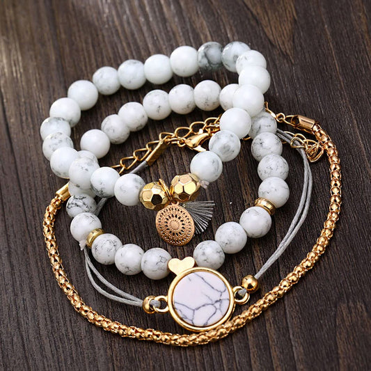 Multilayer Charm Beaded Cuff Bracelet: Boho Chic for Women | White