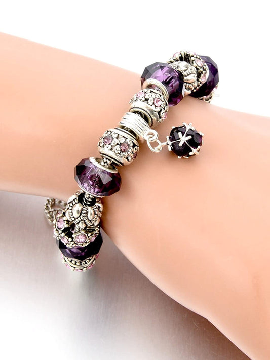 Bracelet for Women and Girls Purple Crystal Pandora Bracelets for Women | Silver Toned Crystal Pandora Charm Bracelet | Birthday Gifts For Women Valentine Gift for Girls