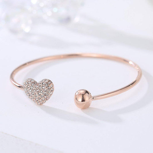 Bracelet for Women and Girls Cuff Kadaa Bracelets for Women Valentines Special Love Heart Crystal Rose Gold Plated Hand Cuff Kadaa Bracelet | Birthday Gift For girls and women Anniversary Gift for Wife