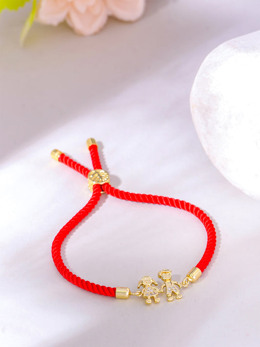 Rakhi Bracelet for Brother Rakhi Gift for Brother Gold Toned Brother Sister Red Rakhi Bracelet for Men and Women.