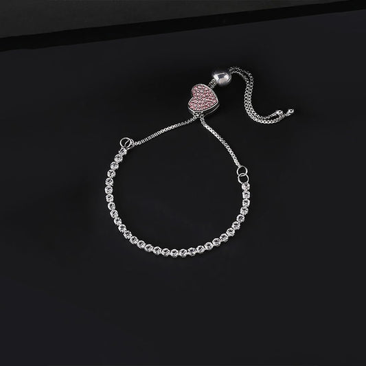 Valentine Gift for Girls White Platinum Plated Base Metal Crystal Swiss Cubic Zircon Adjustable Chain Charm Bracelet for Women