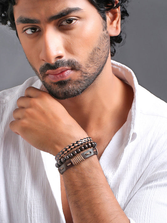 Brown Leather Bracelet for Men - Stylish Multilayer Design | One Size | Natural Color