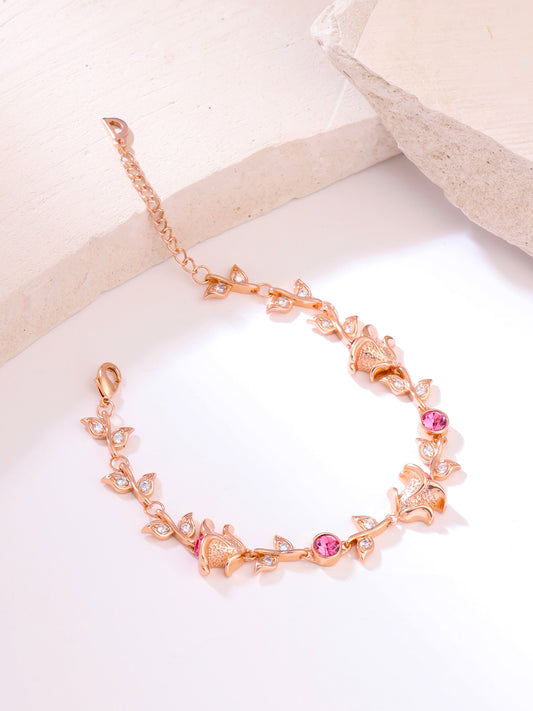 Valentine Gift for Girls Bracelet for Women & Girls A5 High Grade Pink Crystal Bracelets for Women | Floral Shaped Rose Gold Plated Bracelet for Women | Birthday Gift for Girls
