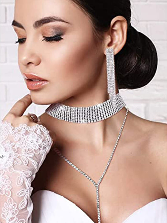 Crystal Jewellery Set for Women Silver Plated White Crystal Necklace Set With Bracelet Jewellery Set For Women and Girls