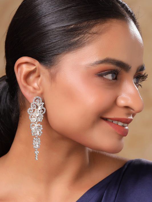 Crystal Danglers Earrings for Women | Silver Earrings for Girls | Fashion Women Earrings | White Stone Long Dangler Earrings | Birthday Gift For Girls Anniversary Gift for Wife