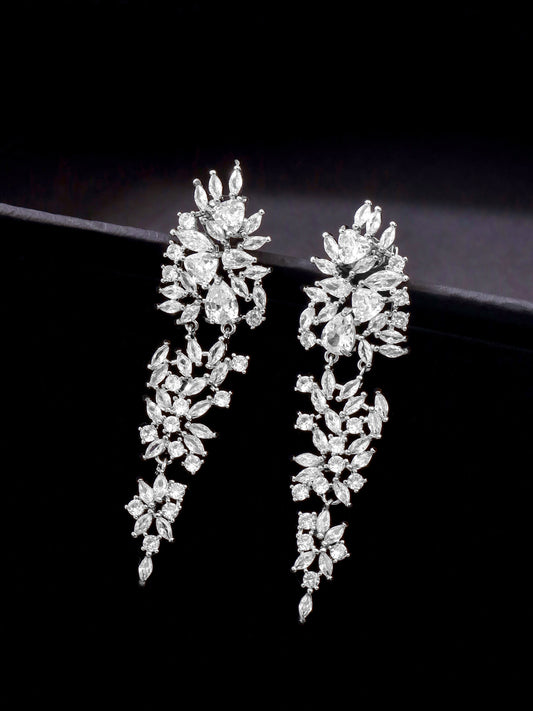 Danglers Earrings for Women Sparkling White Cubic Zircon Silver Plated Dangler Earrings for Women and Girls