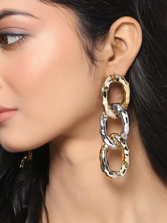 Earrings for Women and Girls Drop Earrings for Girls | Dual Toned Chain Drop Designed Drop Earrings | Birthday Gift for girls and women Anniversary Gift for Wife
