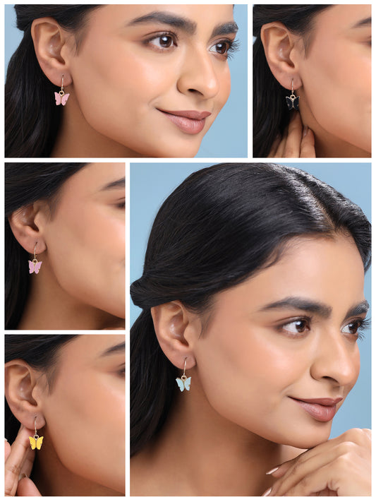 Hoop Earrings for Women Butterfly Shaped Hoops Earrings Set | Multicolor Hoops Bali Combo of 5 Pairs Earrings for Girls | Birthday Gift for Girls & Women Anniversary Gift for Wife