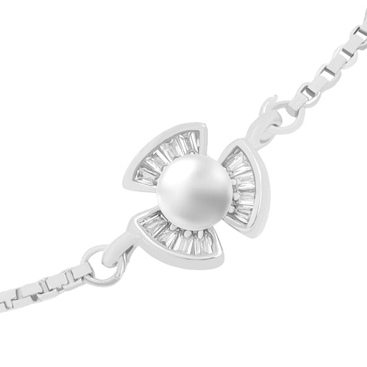 Bracelet for Women & Girls Fashion White Pearl Bracelets for Women | Silver Plated Floral Chain Bracelet | Birthday Gift For Girls & Women Anniversary Gift for Wife