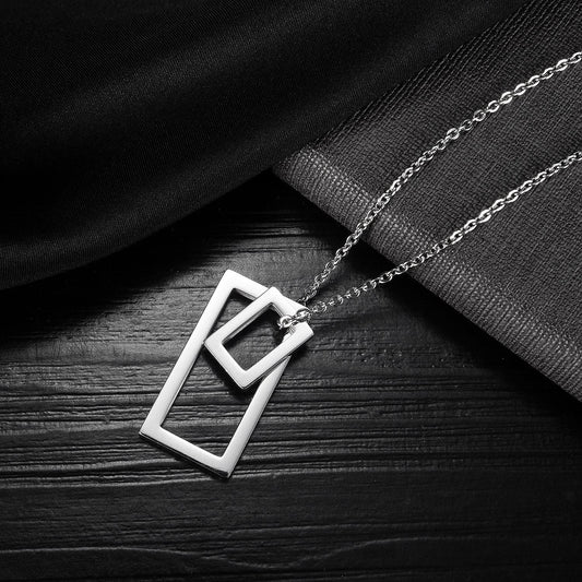 Pendant for Men and Boys Fashion Silver Pendants For Men | Geometric Square Shaped Pendant Necklace | Stainless Steel Hip Hop Pendant Chain for Men| Birthday Gift for Men & Boys