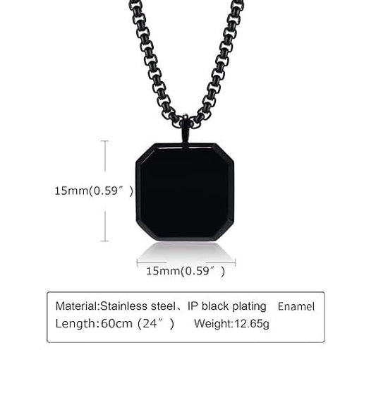 Men Chain Pendant: Fashion Black Square Stainless Steel Necklace | 60 CM | PID: YCFJPD-657GEODRP-BK | Unique Gift