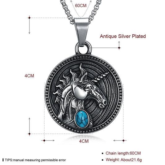 Pendant for Men and Boys Silver Pendants For Men | Stainless Steel Horse Head Opal Stone Pendant Chain for Men | Birthday Gift for Men & Boys Anniversary Gift for Husband