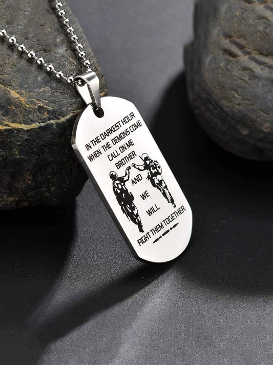 Pendant for Men and Boys Silver Dog Tag for Men Stainless Steel Pendant Chain for Men Inspirational Words We Will Fight Them Together Pendants for Men | Birthday Gift for Men and Boys