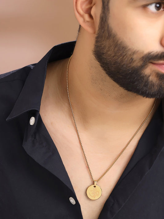 OM Chain Necklace: Fashion Golden Chain Pendant for Men | Stainless Steel | 43CM