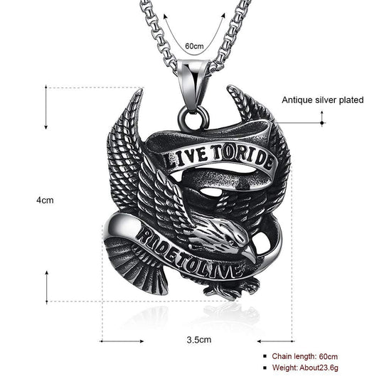 Stainless Steel Live to Ride Silver Eagle Pendant with Chain for Men and Boys