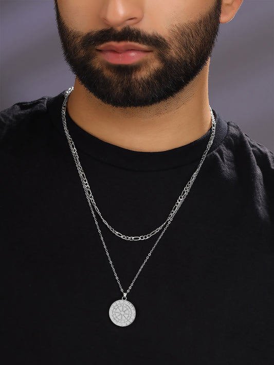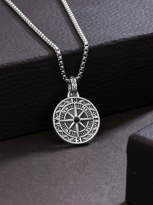 Chain Pendant for Men: Silver Compass Design Necklace | Accessories | 60cm | Stainless Steel