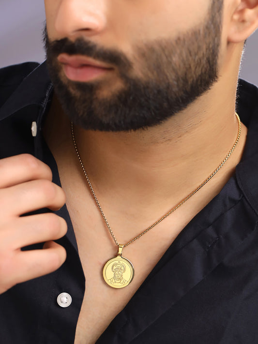 Chain Pendant: Men's Gold-Plated Circle Pendant Necklace | Adjustable Size | Gold