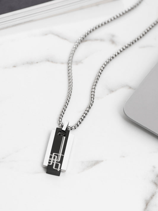 Chain Pendant for Men | Fashion Silver Pendants for Men | Geometric Shaped Stainless Steel Locket Chains Pendent for Boys | Urban Edge | Birthday Anniversary Gift for Men & Boys