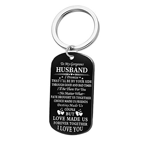 'Love Made Us Forever Together' Touching Love Message To Husband Stainless Steel Keychain Pendant with Chain for Men (Black)