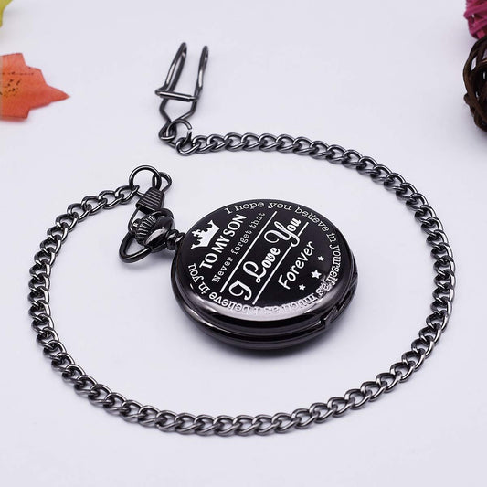 Pendant for Men Black Men Pendant Pocket Watch Pendant with Chain for Son Unique Memorable Gift for Son Stainless Steel Clock for Men and Boys.