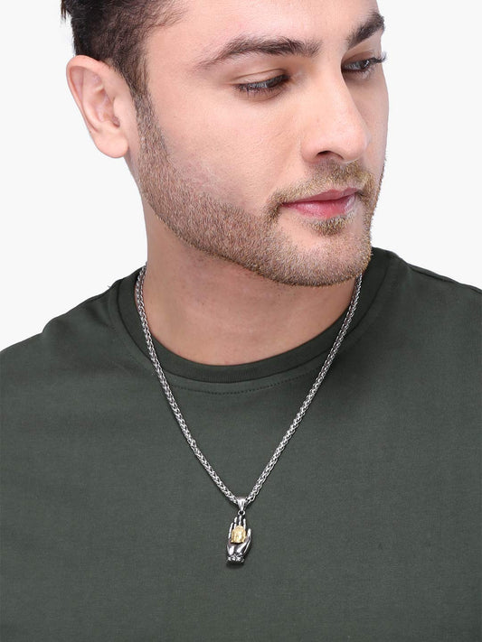 Pendant for Men and Boys Silver Pendants For Men | Stainless Steel Black Pendant Chain for Men | Birthday Gift for Men and Boys Anniversary Gift for Husband (Silver Gold 1)