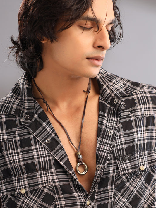 Leather Pendant for Men | Fashion Locket Pendants for Men | Round Shaped Pendant Necklace | Brown Leather Rope Chain for Boys | Accessories for Men | Birthday Gift for Men & Boys