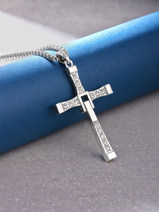 Pendant for Men and Boys Silver Pendants For Men Crystal Studded Pendent with Chain Vin diesel Smart Cross Pendant Chain for Men | Birthday And Anniversary Gift