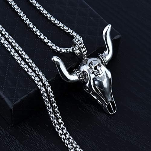 Pendant for Men and Boys Silver Pendants For Men | Silver Toned Stainless Steel Bull Head Skull Pendant Chain for Men | Birthday Gift for Men and Boys Anniversary Gift for Husband