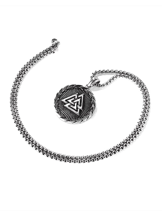 Chain Pendant for Men Silver Chain Men Pendant Stainless Steel Valknut Odin Symbol Locket Pendant for Men and Boys.